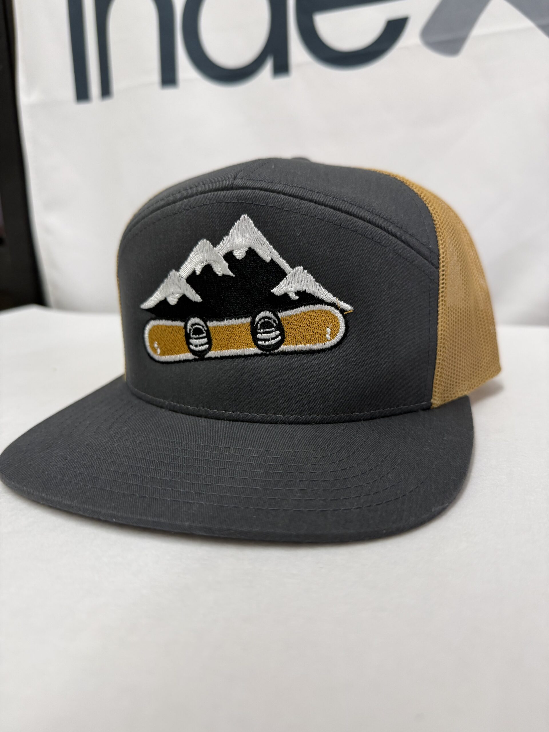 The Summit Ride Hat captures the moment when the mountains and the ride become the same thing. A snowboard cutting across a snowline beneath alpine peaks signals the rhythm of winter days spent chasing lines, lift rides, and the places that shape those memories. This is identity infrastructure disguised as a hat.